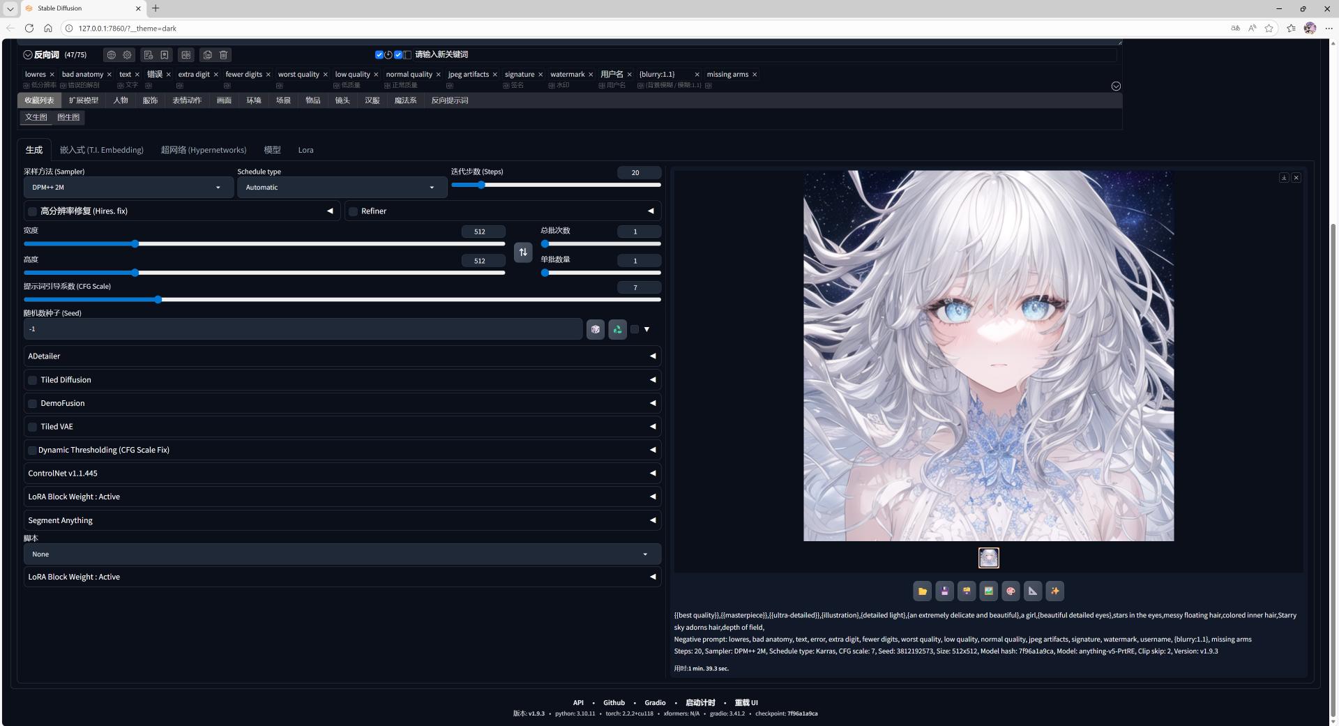 接着来看看华硕NUC 15 Pro文生图的表现,通过Stable Diffusion文生图测试,实测生成一些动漫头像,其中正向和反向关键词都不算少。测试下来一张图生成时间为1分半左右,表现还算不错。