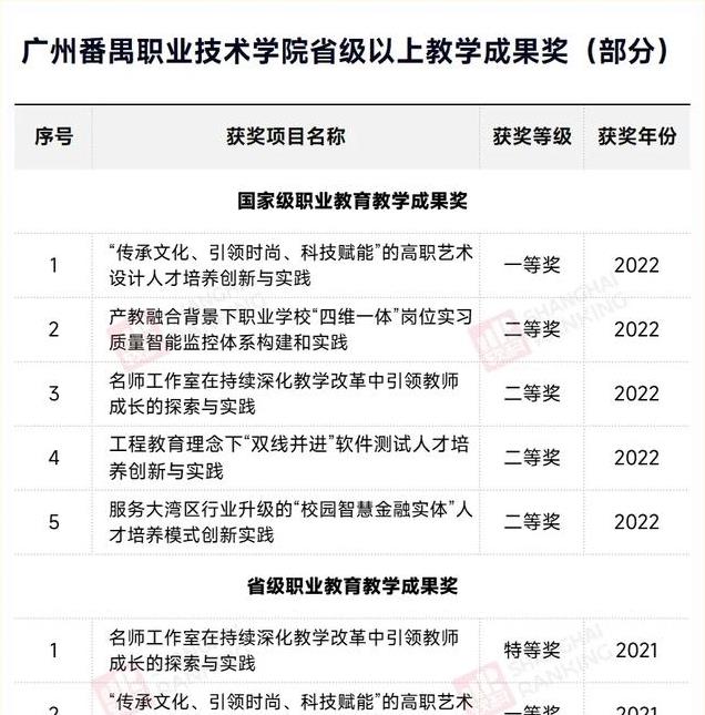此外,在教学成果奖方面,2019—2023年,广州番禺职业技术学院获得5个国家级奖项,16个省级奖项,该项指标达成情况充分满足升格职业本科的设置条件。