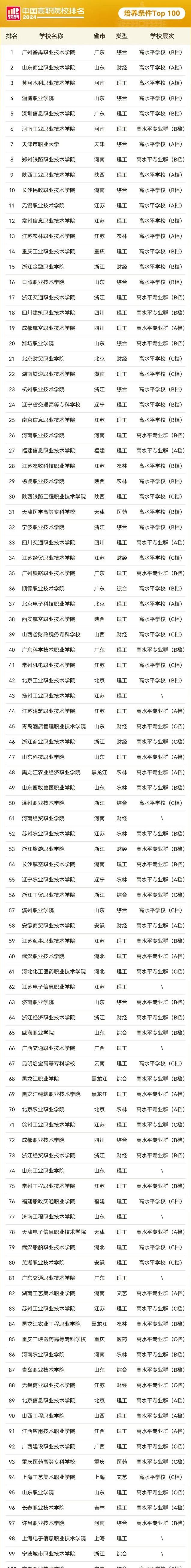 中国高职院校培养条件排名的对象为所有被纳入2024软科中国高职院校排名的公办高职院校。