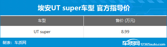 11月9日,埃安UT super正式上市,共推1款车型,整车售价8.99万元,电池租用价4.99万元;同时官方还推出限时5000元科技配置包,包含电动尾门、热泵空调、蓝牙钥匙等配置。埃安UT super是京东联合广汽集团、宁德时代共同推出的车型,在京东独家销售。