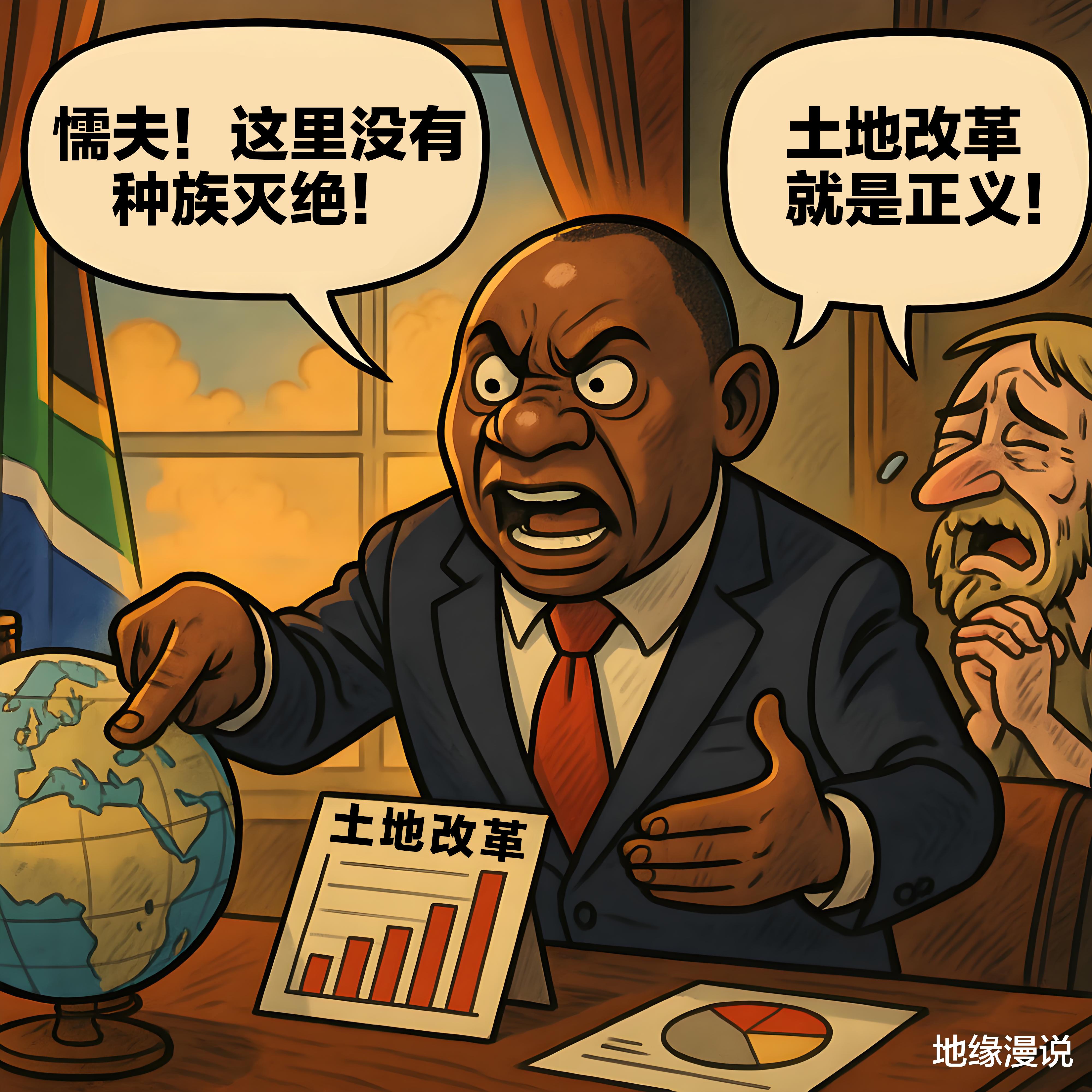 总统拉马福萨严厉地,迅速地驳斥了“白人种族灭绝”这种说法,他称这批人不符合难民的定义,他们是对南非土地变革以及社会正义努力心怀不满的人,批评他们是“懦夫”只会逃避责任,而不是去解决问题。南非官方着重强调,白人仍然掌控着大量的财富和土地,土地变革乃是纠正历史留下来的不公的必要举措。