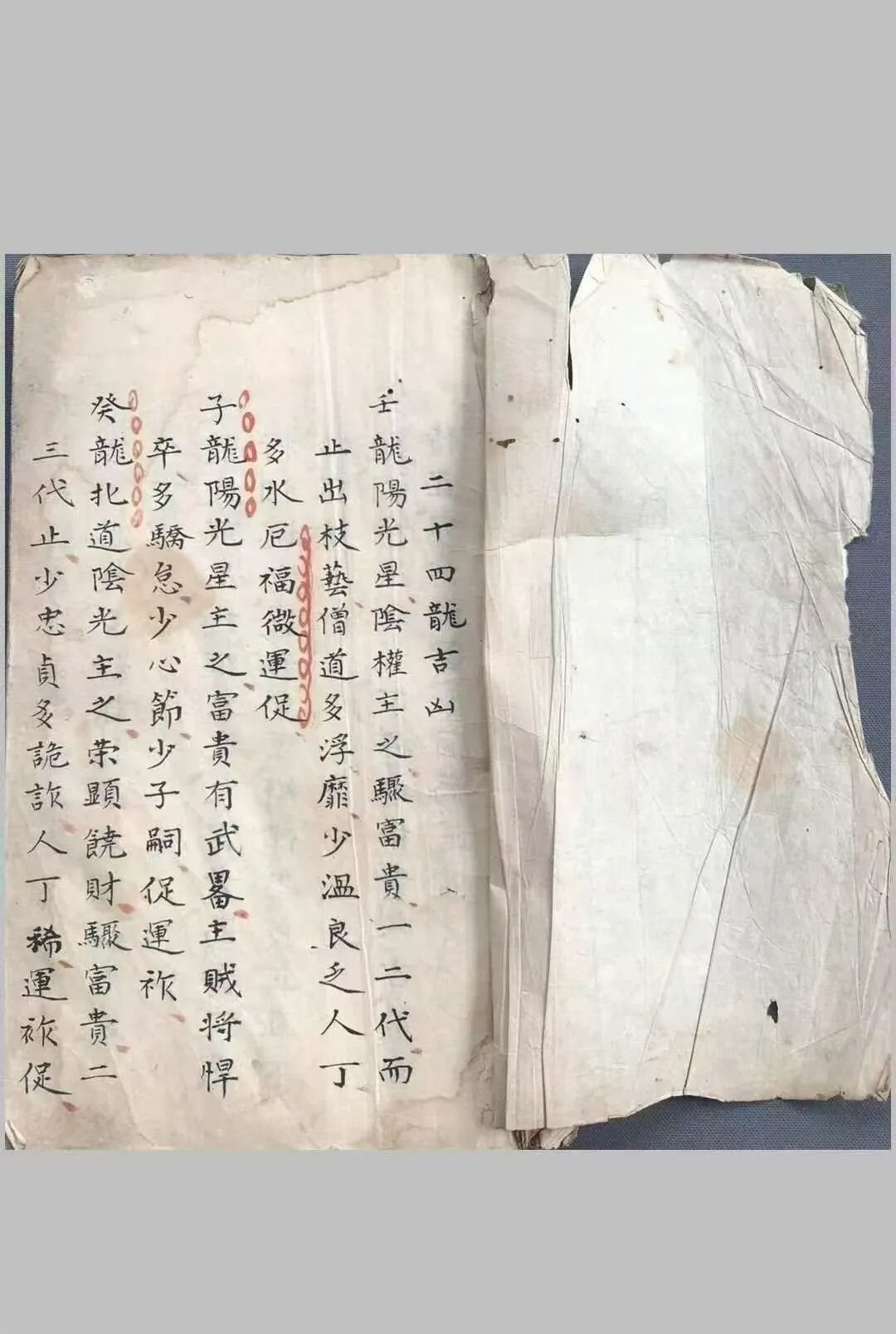 杨公正传,清代珍抄;理气藏真,风水圭臬。《二十四龙吉凶》(又名《杨公真旨要诀二十四龙吉凶断》),一部源自清代的风水地理稀缺手抄珍本,全套两册、共计222页,承袭风水鼻祖杨筠松(杨救贫)正统传承,是清代风水地理领域的传世之作,以手抄本形式传世,墨韵犹存、批注详实,完整保留了杨公风水的原始理气精髓与实操秘法。全书系统收录二十四龙吉凶、二十四山理气歌等核心内容,涵盖龙、穴、砂、水、罗盘运用、催官纳福等全领域,融理论口诀、实操秘诀与实战经验于一体,兼具极强的实操性、传承性与收藏价值,是风水从业者、命理研究者、古籍藏家寻觅的稀世珍品,更是深耕风水地理者突破瓶颈、精准断验的“杨公真诀”。