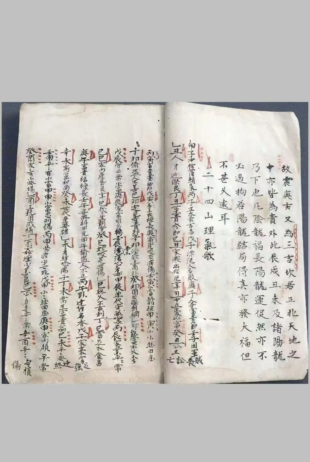 全套两册、222页精编,干货密集、分类清晰,构建起“龙气判断+理气推演+罗盘运用+砂水断验+实操秘诀”的完整风水体系,每一项内容都记载详尽,无半句虚言,完美诠释杨公风水“察形、理气、合局”的核心逻辑。核心内容涵盖风水全场景,精准适配阴阳宅选址、布局、断验等实操需求:二十四龙吉凶、论六十龙吉凶,详解龙气走向、方位吉凶,精准判断龙气兴衰,为阴阳宅选址奠定基础;二十四山理气歌,以朗朗上口的口诀形式,传授二十四山理气核心,便于记诵与实操,是风水理气的入门与进阶关键。