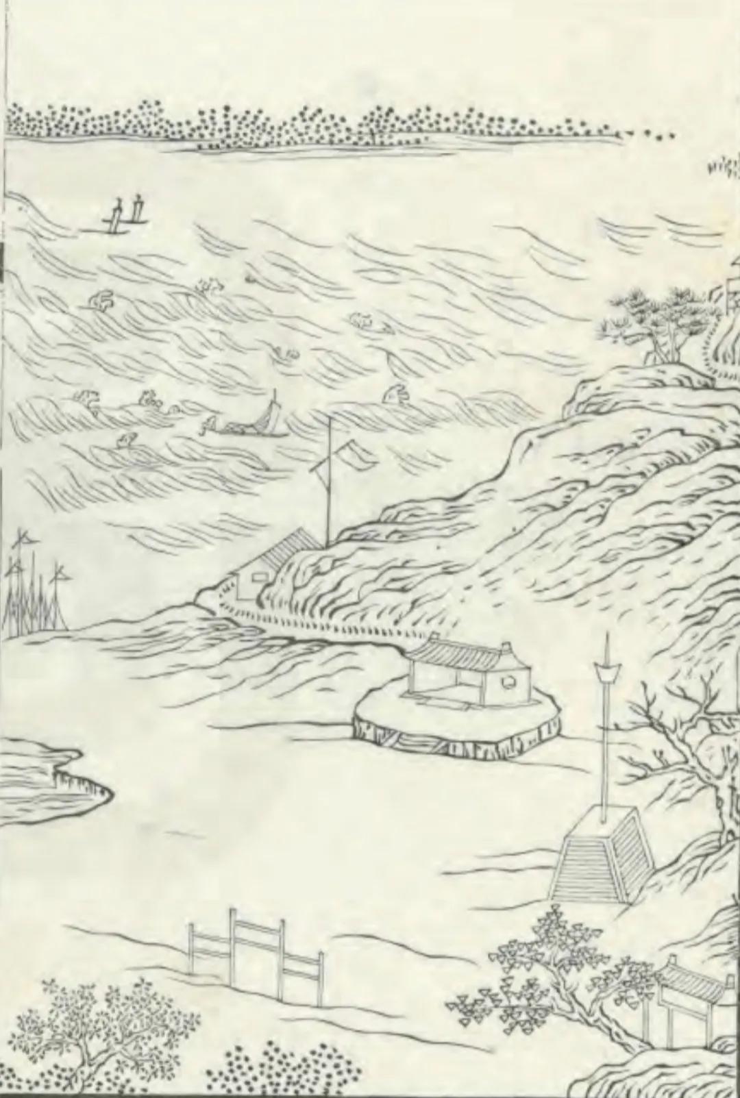 道光年间江阴君山北面一片汪洋,浪花时不时冲刷君山北坡的岩石。