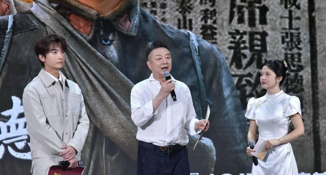 牛骏峰、聂远、王力可、于震这一溜演员紧跟着上台。 没有明星架子,一群人排排站,扯开嗓子朗诵《为人民服务》。 当牛骏峰念到"张思德同志是为人民利益而死的"时,台下有位白发老人悄悄抹了眼角。