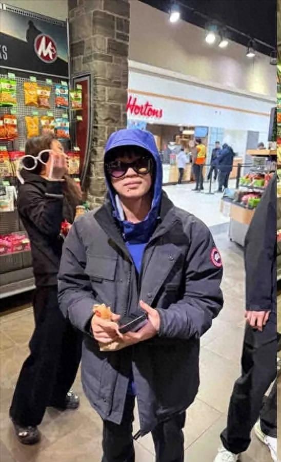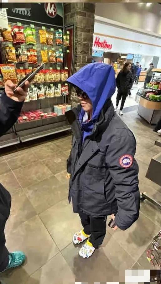 单薄的蓝色队服外面还套了件加拿大本土的“加拿大鹅”。