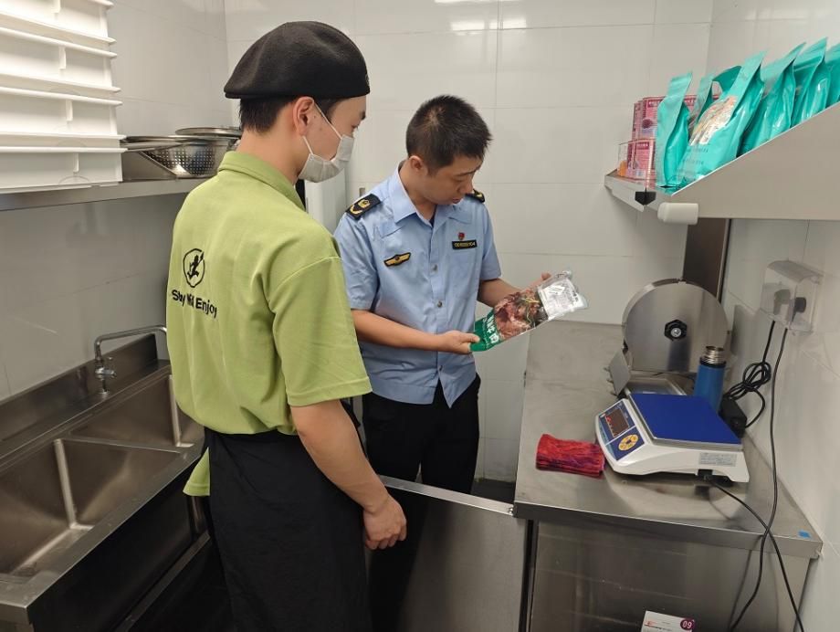 随即,执法人员突击检查直捣后厨。只见冰柜里全是预包装冷冻肉,产品名称赫然写着“预制牛肉”字样,标签显示该牛肉为原料经过切割、调味、搭配组合的“速冻生制菜肴制品”。面对铁证,店主表示,为揽客用了“原切”噱头。执法人员当场责令立即整改线上宣传。对该店虚假宣传误导消费者的行为,城门市场监管所正式立案调查。