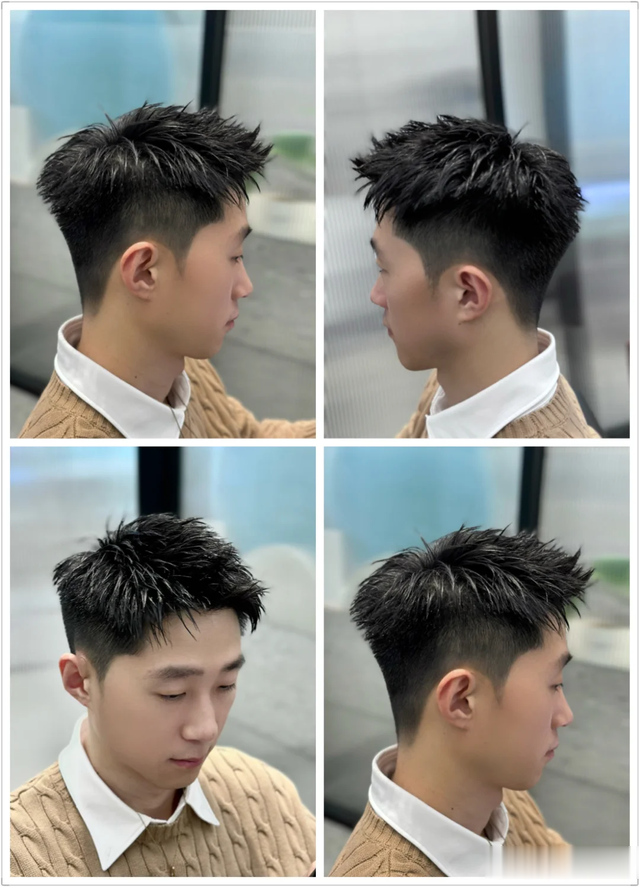 这款前刺发型适合职场男士,干练又不失时尚感 前刺的设计让整个发型看起来更加立体,增加层次感 无论是商务谈判还是公司年会,都能展现出你的自信和专业性