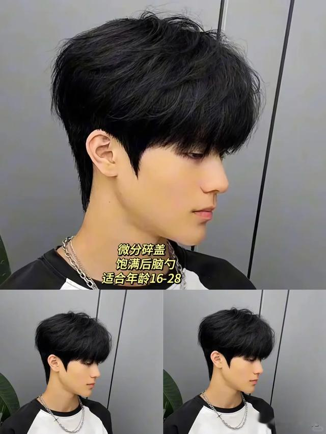 微分碎盖 发根做了摩根烫,增加蓬松度,颅顶立马增高,头包脸效果绝绝子。两侧头发微微铲短,保留一定长度修饰脸型,碎碎的刘海恰到好处地遮住额头,弱化圆脸的圆润感,增添几分少年的清爽与灵动。无论是日常出街还是校园生活,都超级适配,妥妥的阳光少年既视感☀