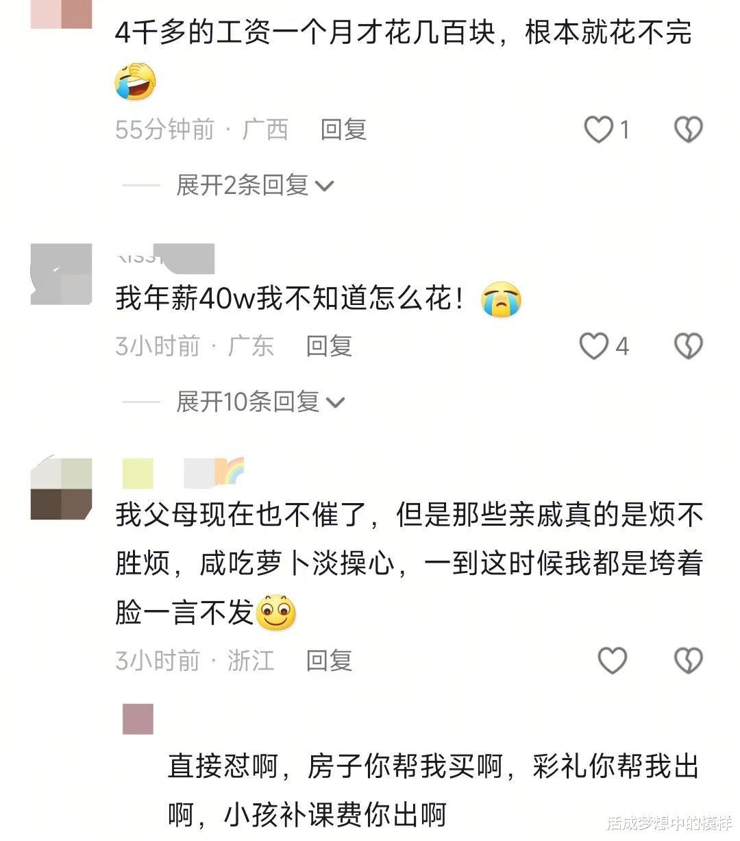 什么男生负担一切责任和花费,什么当牛做马花钱当孙子,什么上交工资掏空全家娶媳妇,为什么要承受这些呢?想通了,于是男性也开始反抗父母和亲戚们的连环催婚了。