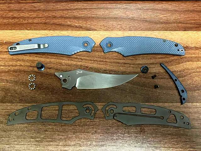分解保养一下,G10手柄夹固定弹片,中间通过陶瓷轴承连接刀身,从而确保刀身顺滑的打开和关闭。