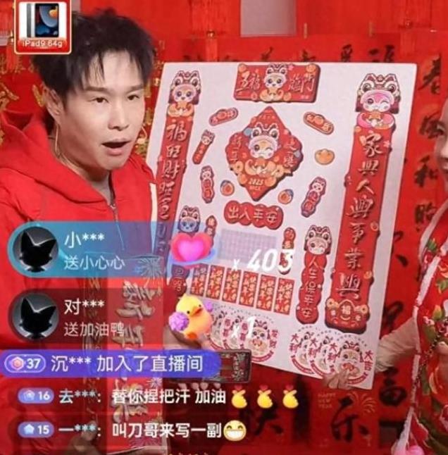 很多网友还在直播间留言:让刀哥来写一副春联。