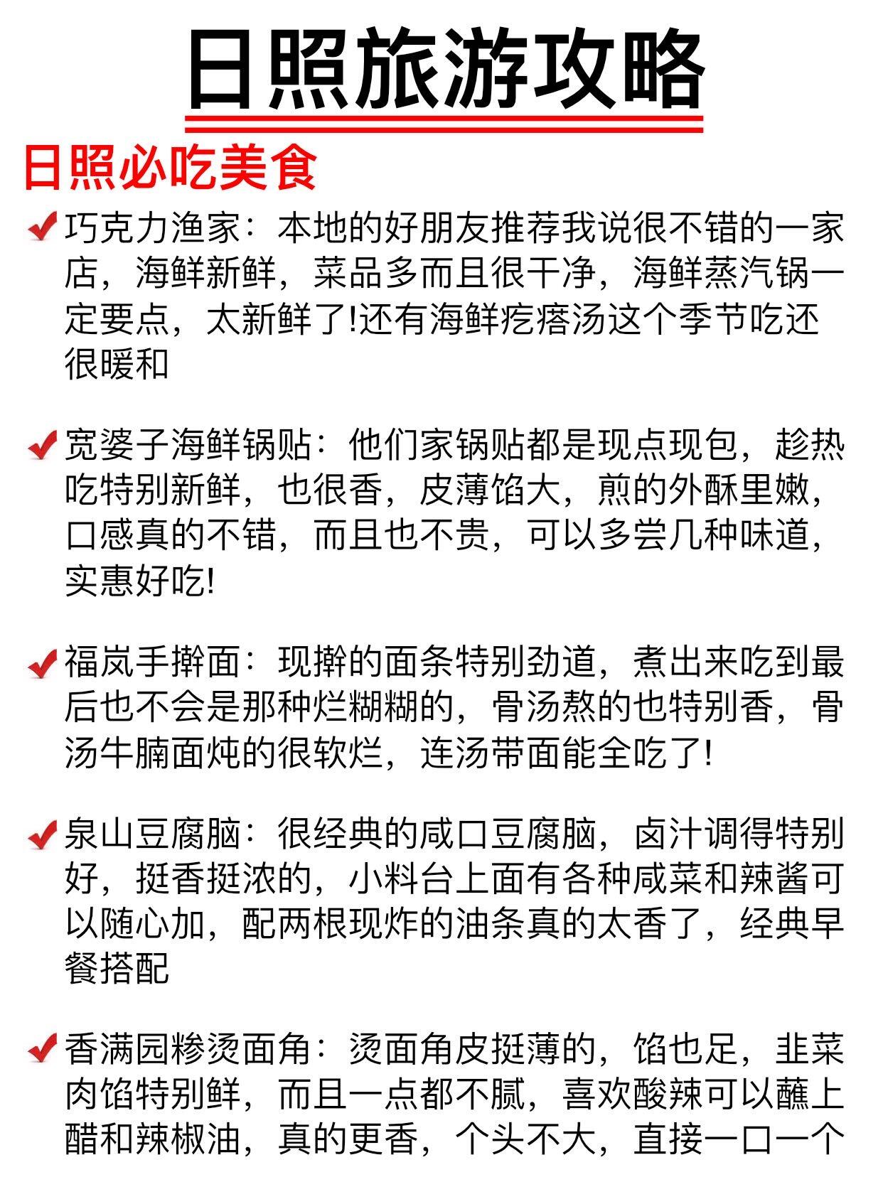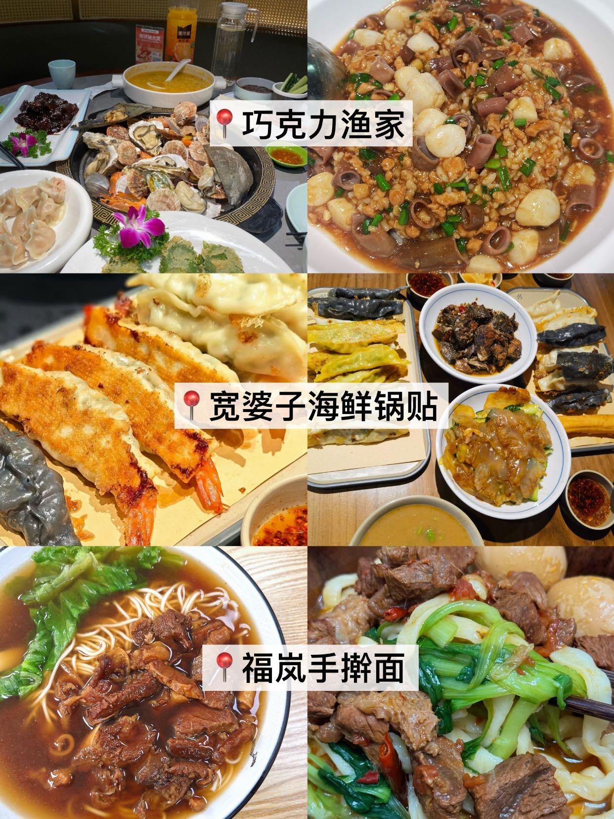 🍤吃的方面我也是挖到宝了!巧克力渔家的海鲜蒸汽锅好赞啊👍,而且海鲜都是现捞的🦞;早餐可以试试宽婆子海鲜锅贴,馅料特别实惠💰;福岚手擀面、泉山豆腐脑、香满园糁烫面角都是本人亲尝不错的😋