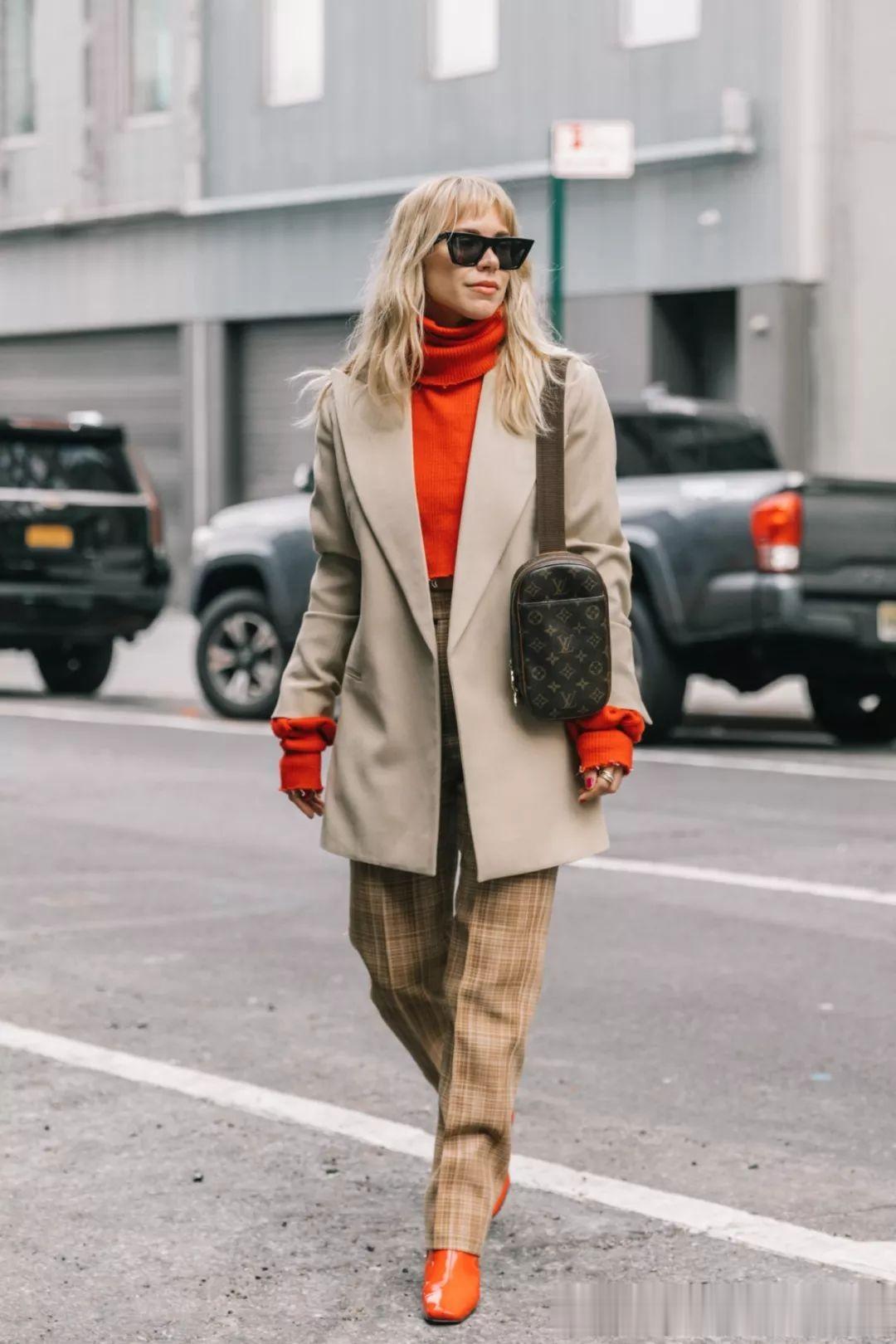 三、大胆加入彩色撞色,更吸睛时髦:色彩里的“时尚觉醒”如果说前两点是“三明治穿法”的基础框架,那么彩色撞色则是这套搭配的“灵魂所在”。这种大胆的色彩碰撞,不仅能打破冬季造型的沉闷感,还能通过色彩的对比展现个性态度。