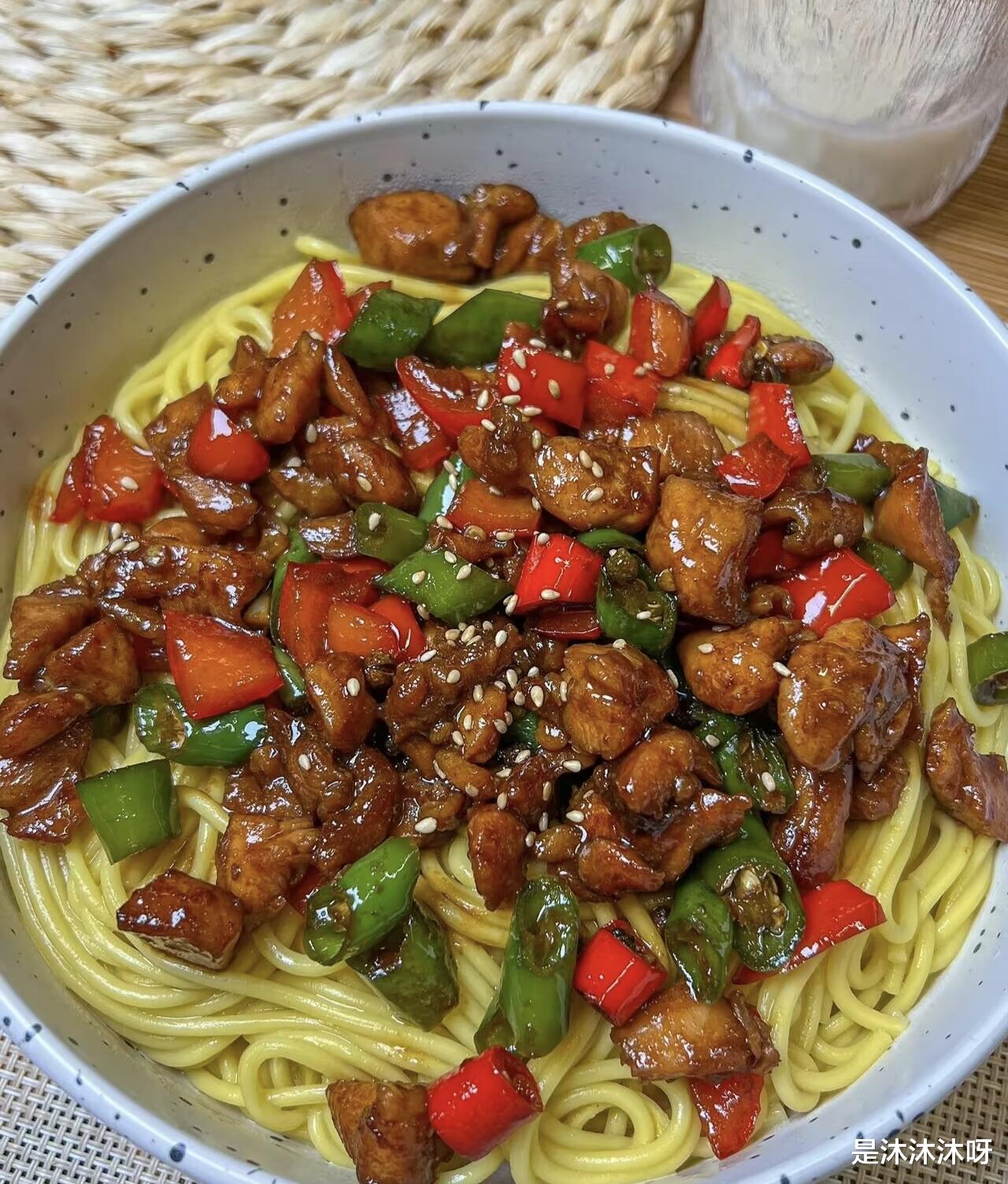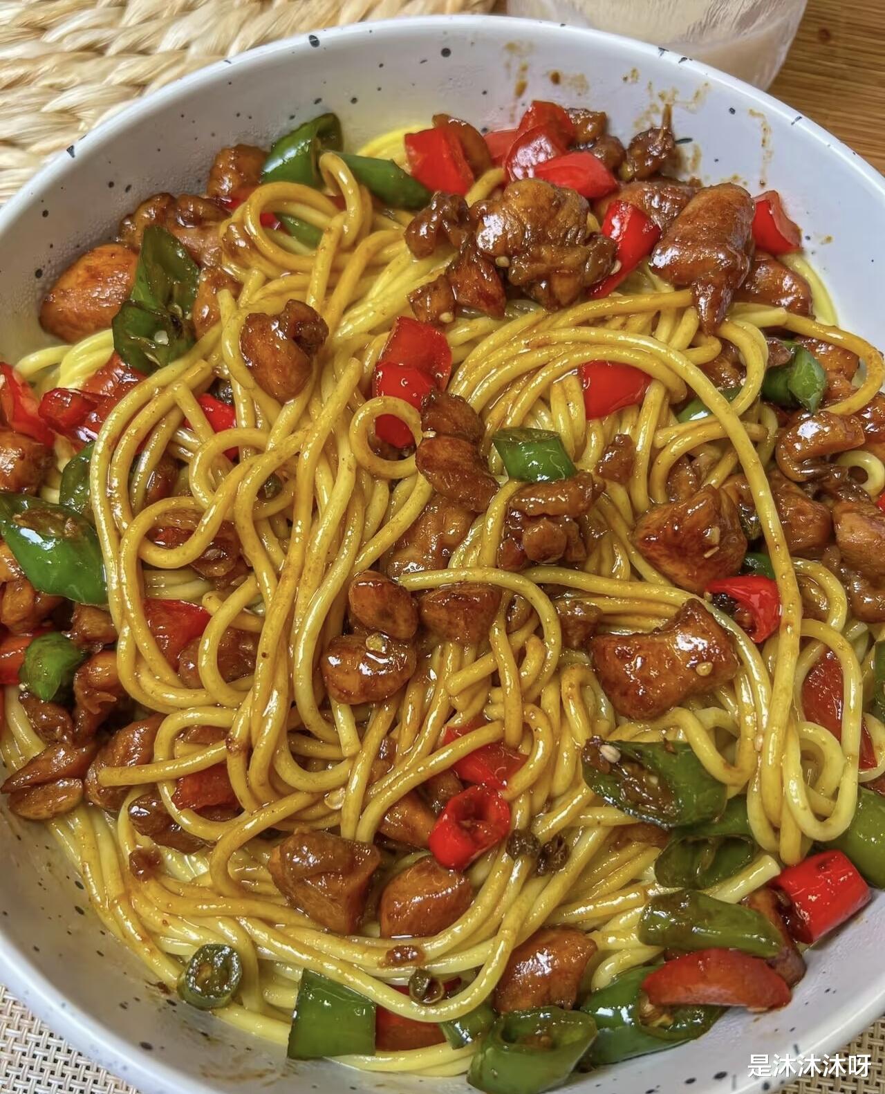 迫不及待地挑起一筷子塞进嘴里,哇,那个满足感简直了!面条劲道顺滑,上面挂着浓郁的酱汁,咬一口鸡丁,鲜嫩多汁,再嚼一颗青红椒,清脆爽口,微辣中带着一丝回甘。这一碗面下肚,从胃暖到心,所有的疲惫和烦恼好像都被这口美味给治愈了。
