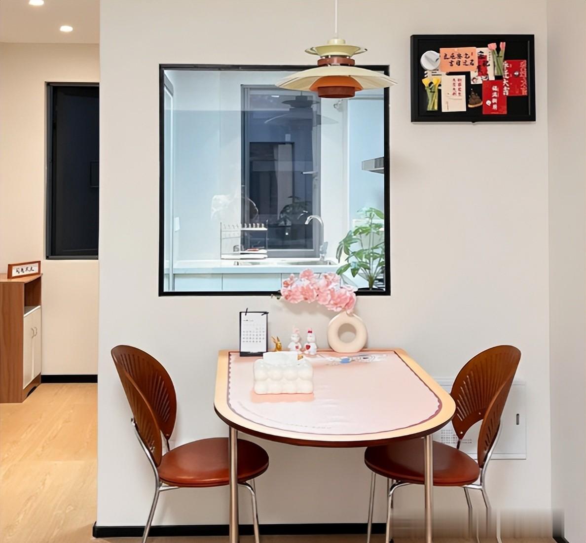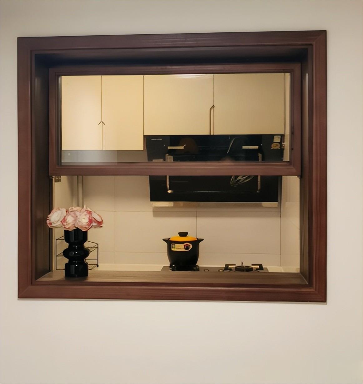 如果窗户外面就是餐桌,那么开孔要高于餐桌20厘米左右,这样川菜更加方便。