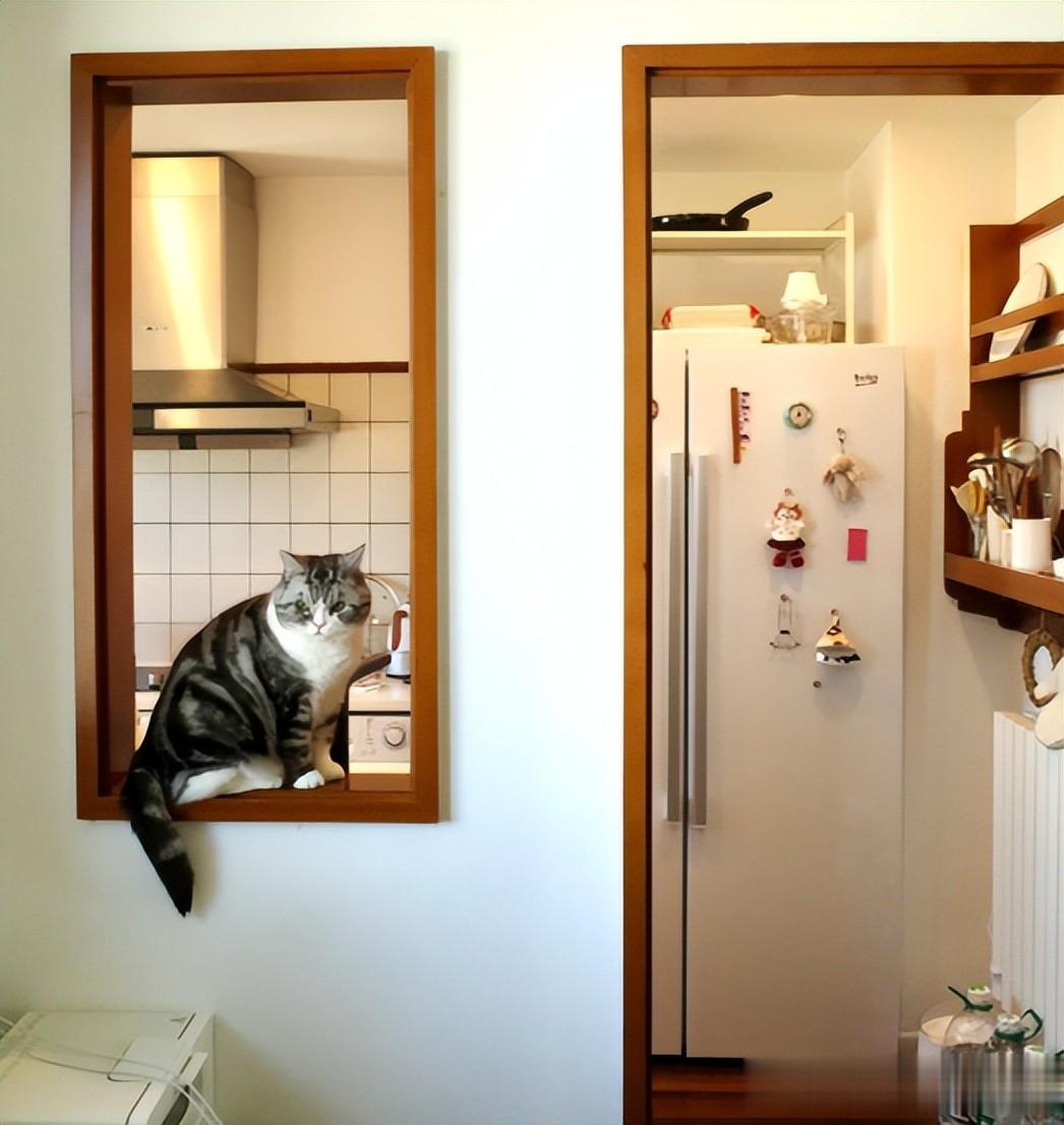 所以装修阶段他就决定在厨房的墙壁上开个洞,