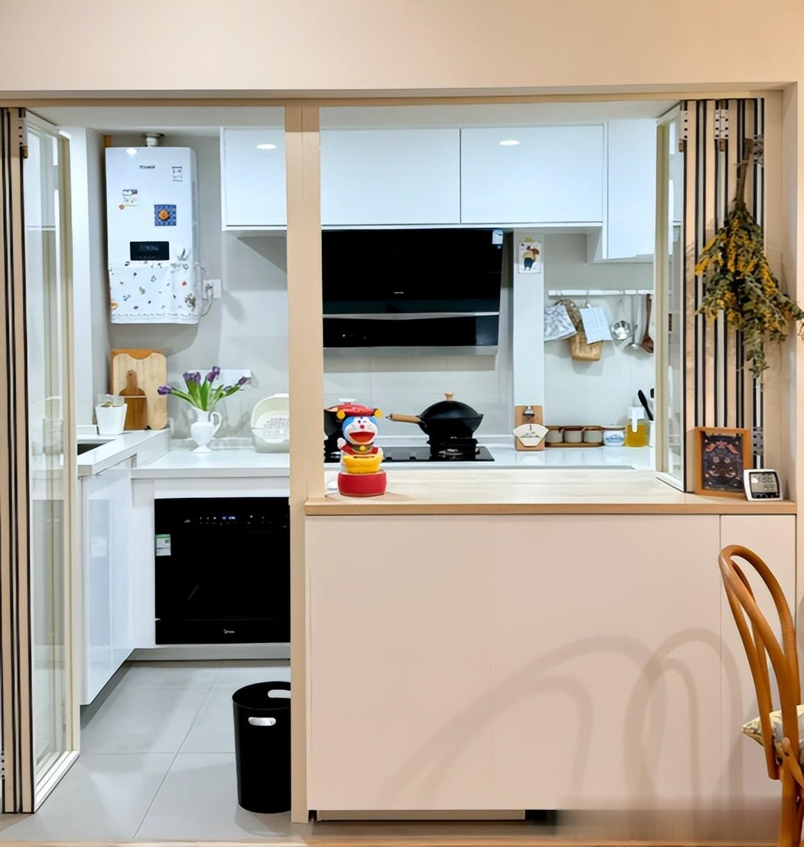 发现大多数小户型厨房做了这个设计之后都变得宽敞很多,她才决定在自己家厨房也开个洞。