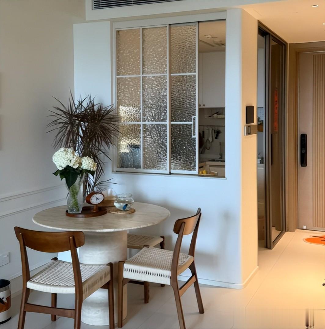 只需要在厨房墙壁上开个洞,就可以解决厨房、餐厅动线不流畅的问题,这多方便啊。