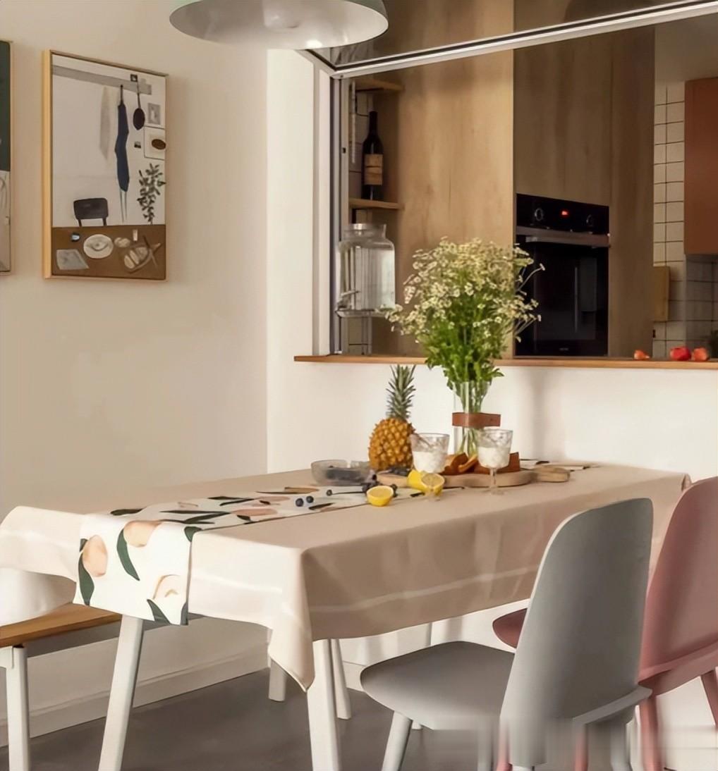 厨房外面正好就是餐厅,那么炒完的菜顺手就可以放在餐桌上,这多方便啊,根本不需要端着菜来回走。