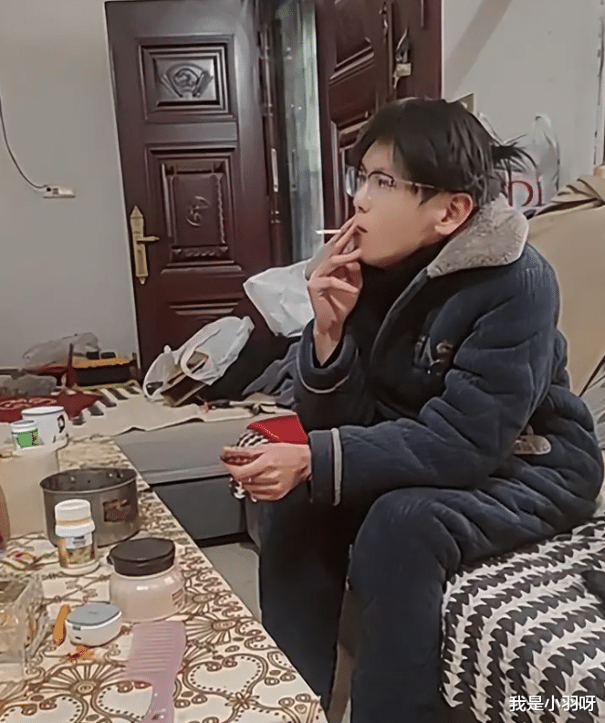 画面中的男孩看上去是上高中的年纪,坐在客厅的沙发里,手里叼着烟,吞云吐雾的样子,甚至比很多中年男人还要熟练。
