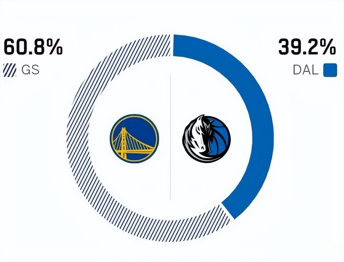 赛前,美媒ESPN对本场比赛进行了胜率预测,独行侠的胜率仅有39.2%,劣势明显,勇士队的胜率则高达60.6% 。