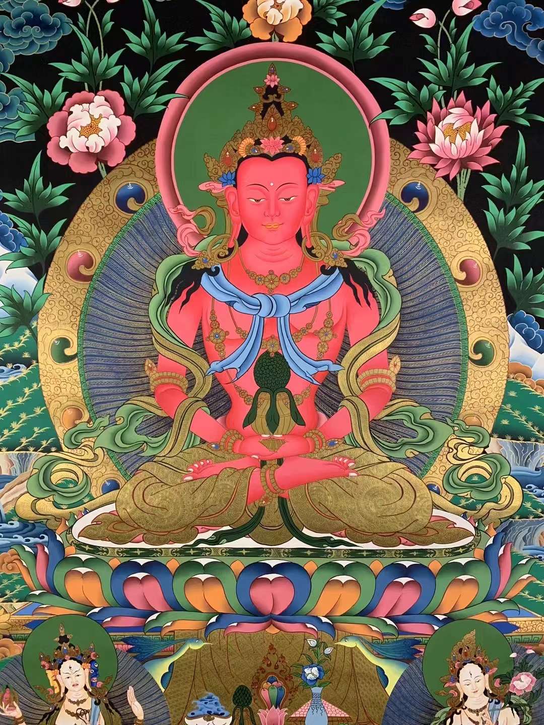 接下来请朋友们欣赏一组沃唐卡编号为171-827446的长寿佛唐卡: