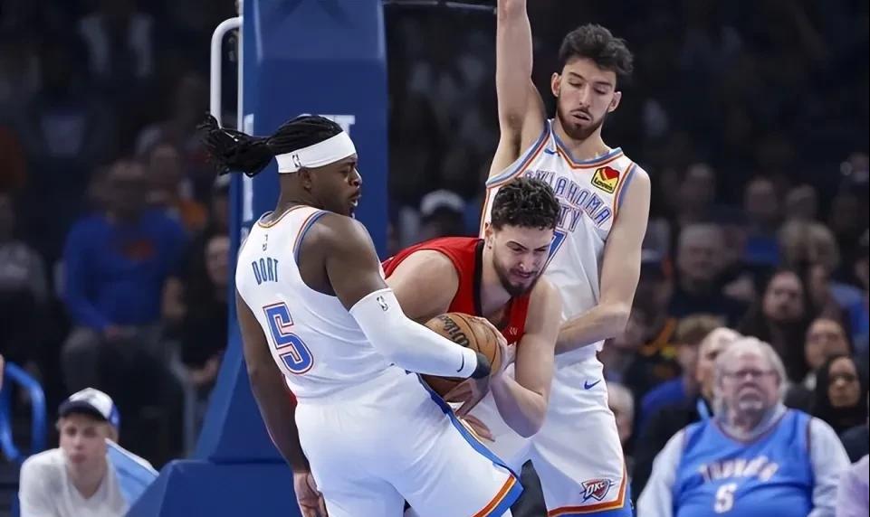 申京也不是不能投,他本赛季三分命中率30%,只是越投越少了。但如果对手放空申京,他比阿门的三分还是靠谱不少。毕竟申京有时候也能干进3个三分,只是范乔丹的赛季报销,让申京不得不承担大量的组织工作。其实大家感觉申京今年退步了,原因还是范乔丹报销。范乔丹不打,申京必须要在进攻端投入更多精力组织,他在防守端没办法全力去防守。今天对雷霆,申京在想防守的情况下,确实是防的很不错。乌度卡赛后直接夸奖申京,对手面对他就打进一球。而过去几场比赛,对手打申京命中率为70%。
