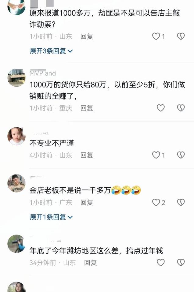 这件事中惹网友争议的一点就是当抢劫案发生后,寿光市金店的老板面对记者采访称自己的金店被抢走一千多万的黄金。