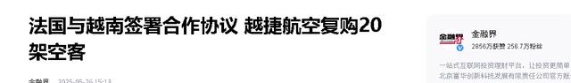 金融界:2025-05-26《法国与越南签署合作协议 越捷航空复购20架空客》
