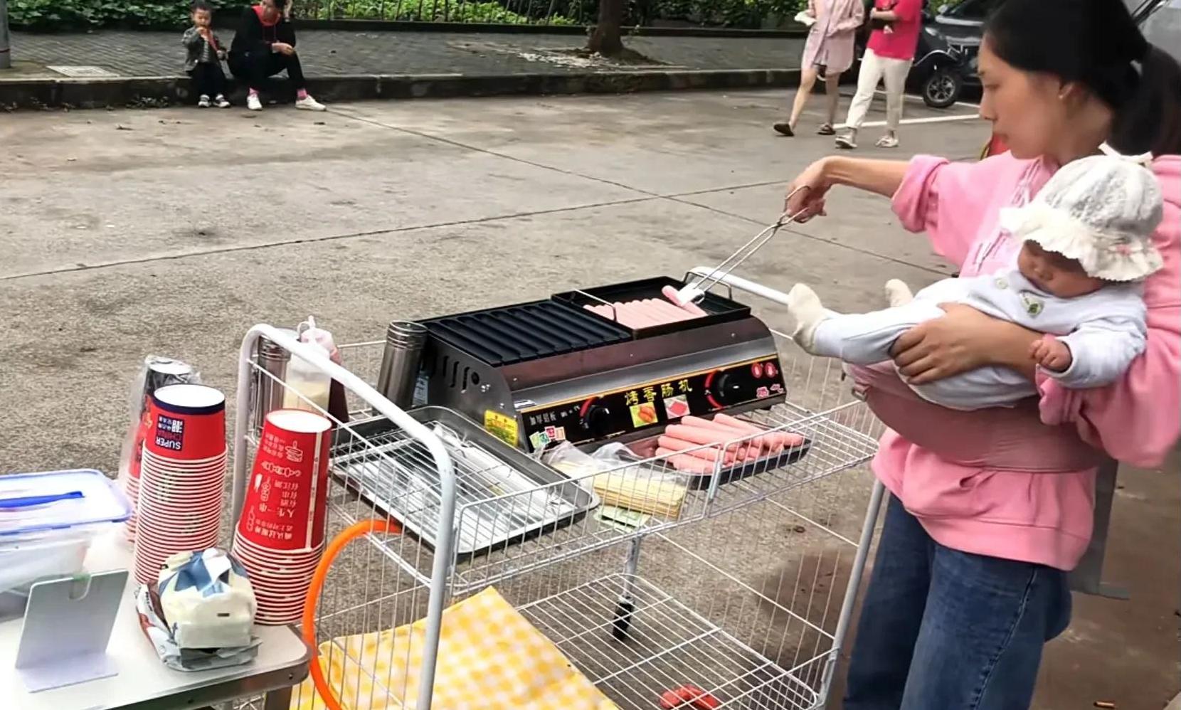 襁褓中的女儿成了摆摊搭档孩子才3个月大,林静就不得不带着她走上街头摆摊。