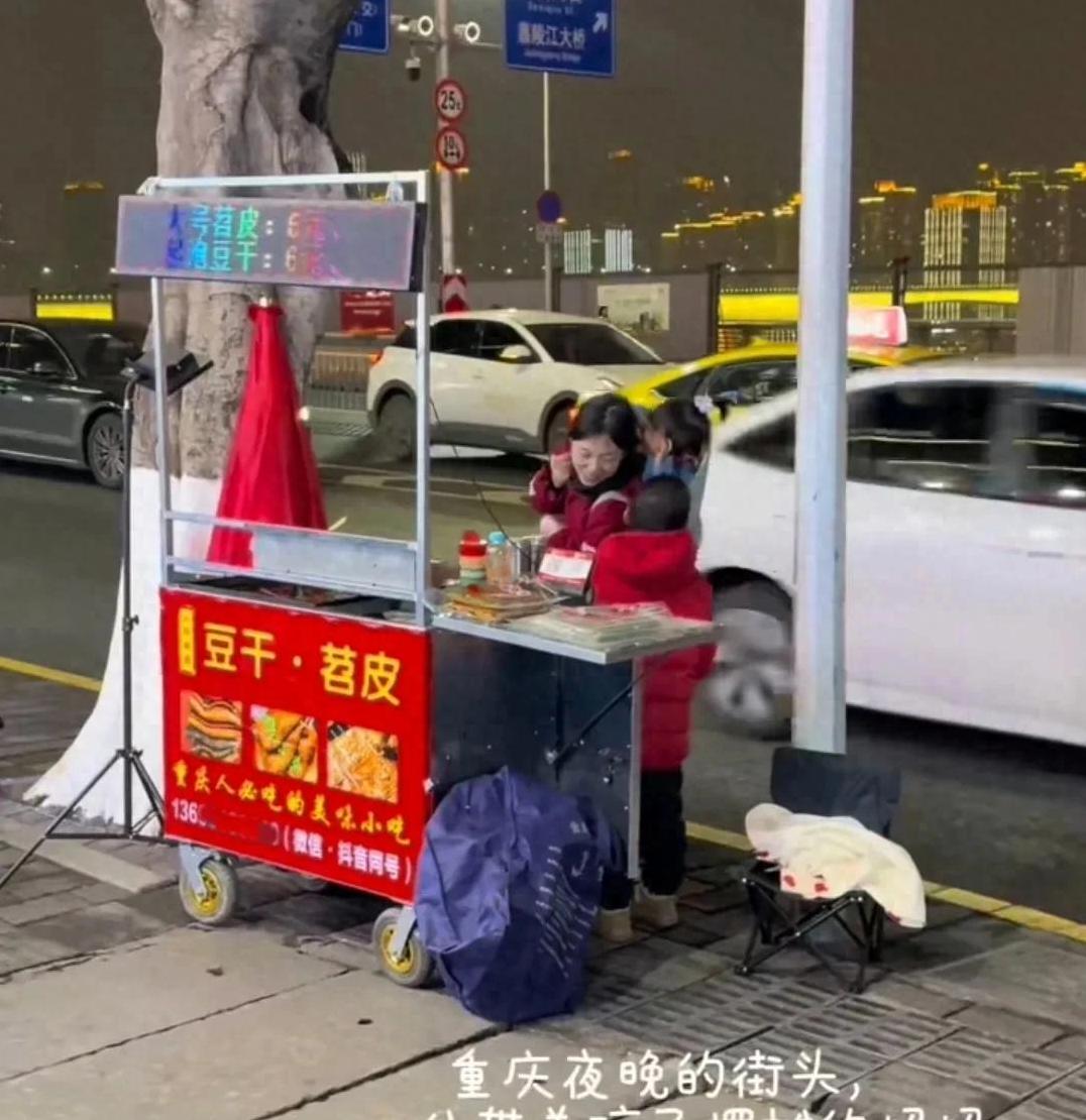 一边要处理顾客,一边还得哄孩子,街头的喧嚣与夜晚的寒意加在一起,让她的生活充满挑战。