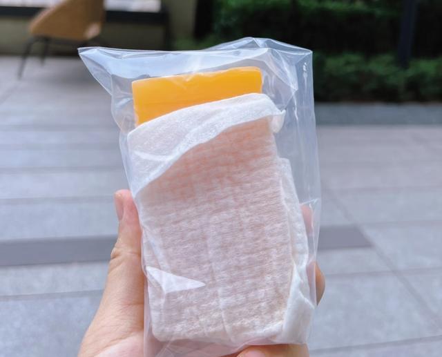 将肥皂切一点小块,或者有用剩下的碎皂头也可以,将其装进剪开的口罩里,绑起来。