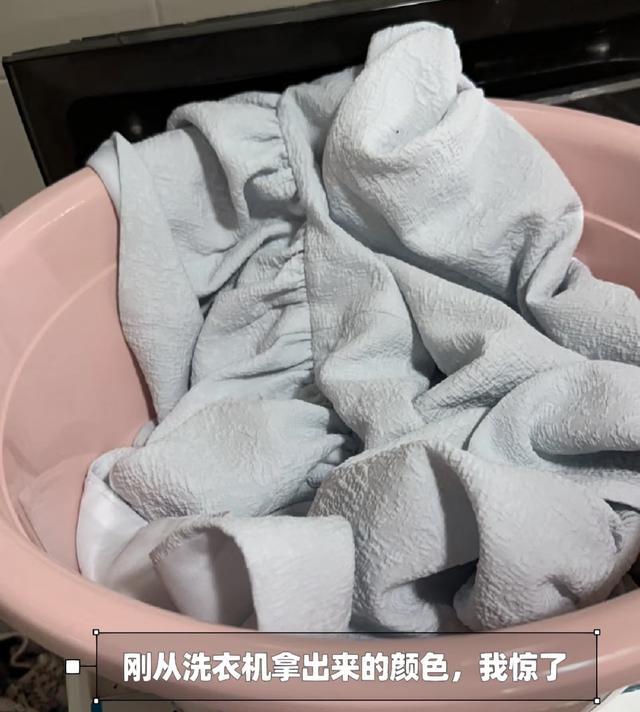 上次洗衣服,白色的内搭直接串色成浅蓝色了,用洗衣液泡了半天都不行。