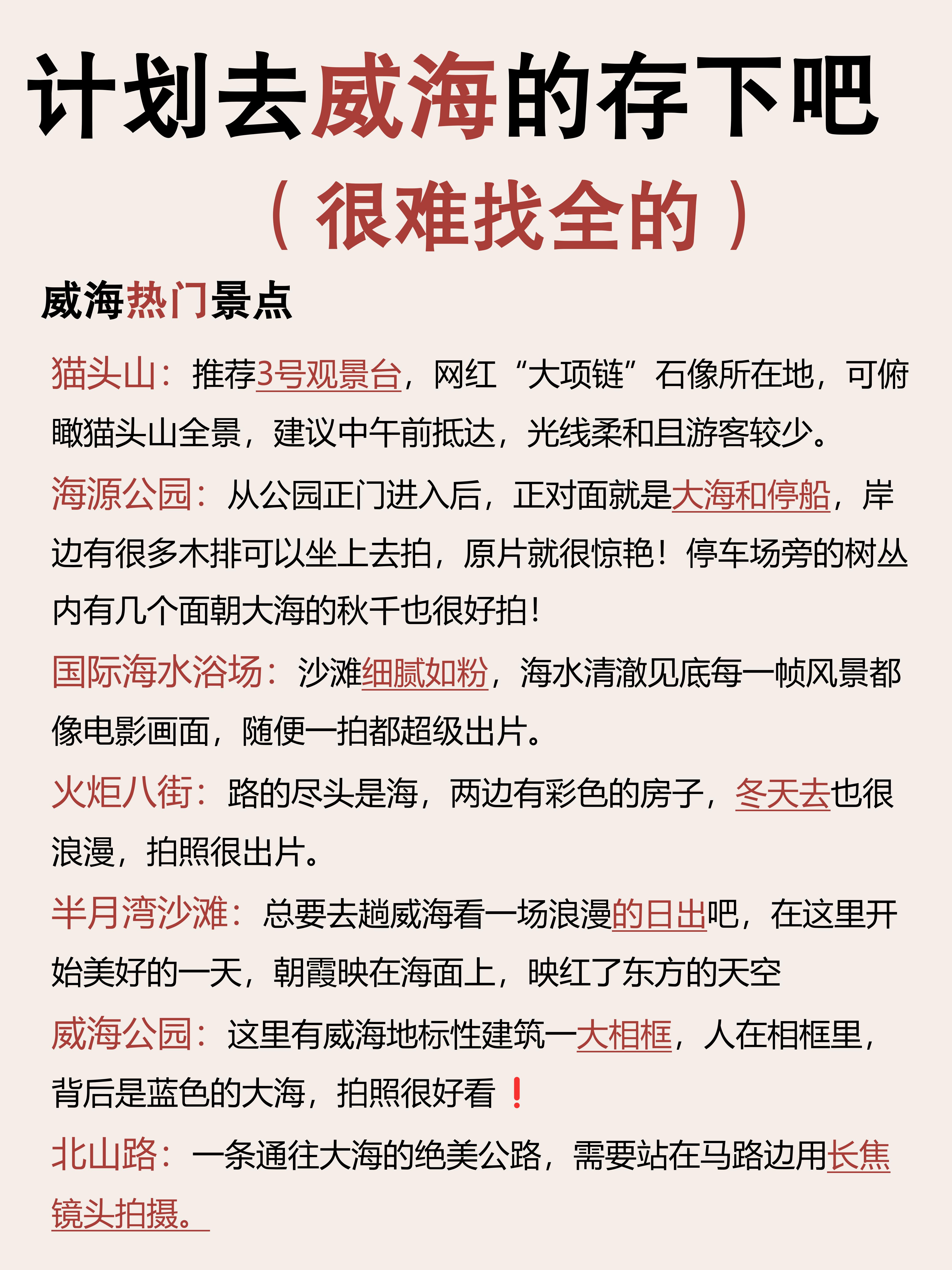 谢谢我的威海好朋友👫!知道我要去威海旅游马上给我整理📝一份旅游攻略!
