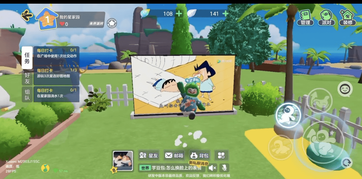 这次在《元梦之星》中也一样,大家在自己“星乐园”的院子里,就可以架起一个屏幕。然后邀请朋友到院子里,打开“投影仪”,就可以直接播放腾讯视频的各种热剧了。这个这个“投影仪”还内置了腾讯视频的搜索器的插件,大家可以根据喜欢搜索资源进行观看。