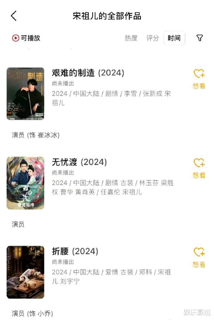 宋祖儿没有问题的话,那是不是说明《折腰》《无忧渡》《艰难的制造》都可以播了,要知道当时宋祖儿被爆偷逃税款问题时,网友们遗憾不已,认为她是新生代小花中少有的长得美又演技好女明星,再加上,宋祖儿的待播剧特别吸引人,大家不想错过。