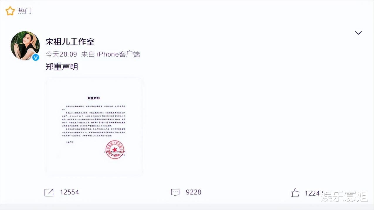 嗨!这里是娱乐寡姐,为你带来最新娱乐资讯。停工一年的宋祖儿终于有消息了,宋祖儿工作室发布声明强调宋祖儿没有偷逃税款问题,对于某网友的歪曲事实行为,工作室已对相关证据进行保全。此声明一出,立即引发全网热议,登顶微博第一。