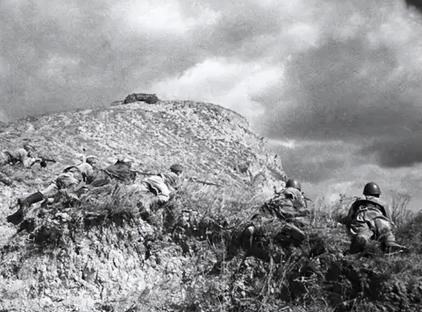 但敌人的装备远远超过了他们,坦克的炮火不断轰击着山坡,一块块巨石被炸得四分五裂,溅起的碎石划破战士们的脸颊,但没有人停下。