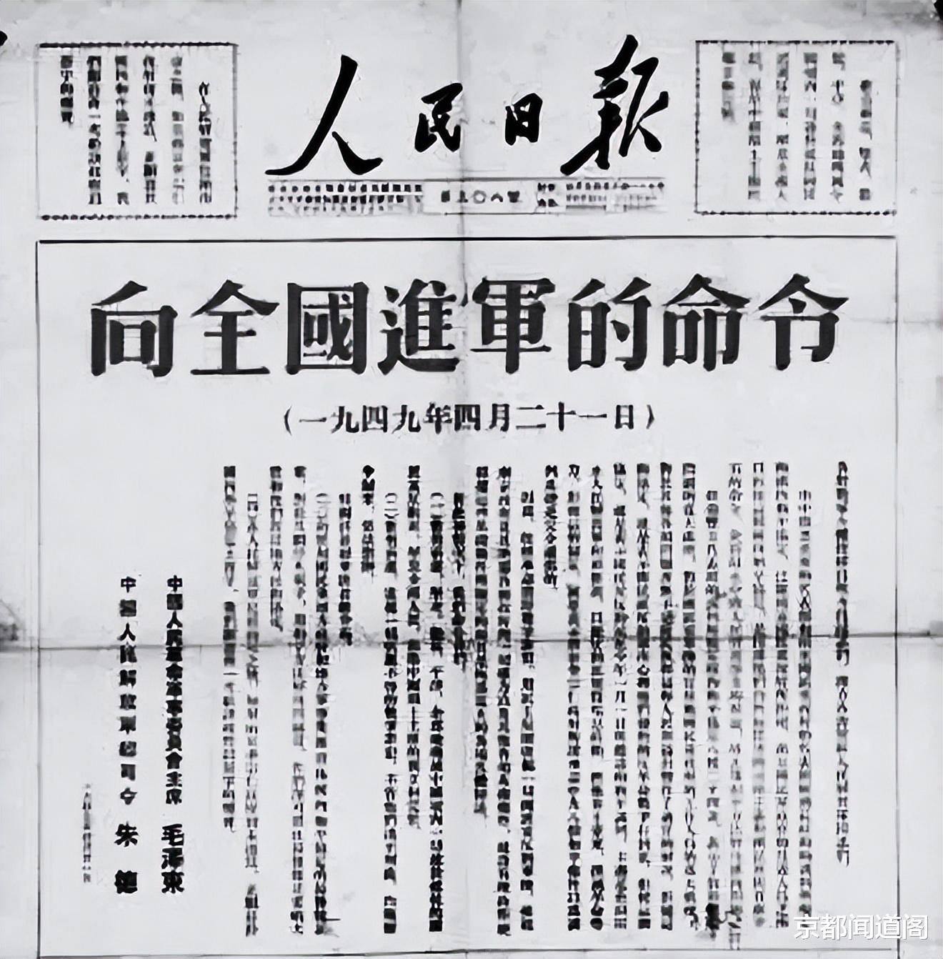 由于国民党高层拒绝在国共两党和谈小组起草的和平协议书上签字,中共调集各野战部队,百万雄师饮马长江北岸。1949年4月21日,毛主席亲自起草,并以毛泽东主席、朱德总司令名义向中国人民解放军发出《向全国进军的命令》。