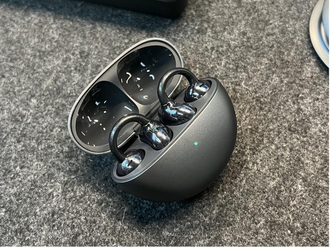 这款耳机的耳夹式设计可以让耳朵保持通透的感觉。耳机单耳约 6.3 克,戴在耳朵上感觉很轻,戴着很舒服。耳机的 “C 型” 内桥外部用了高品质 TPU 材质,摸起来柔软亲肤;再加上12° 黄金夹角设计,既能牢牢贴合耳部,还能带来不错的佩戴体验。