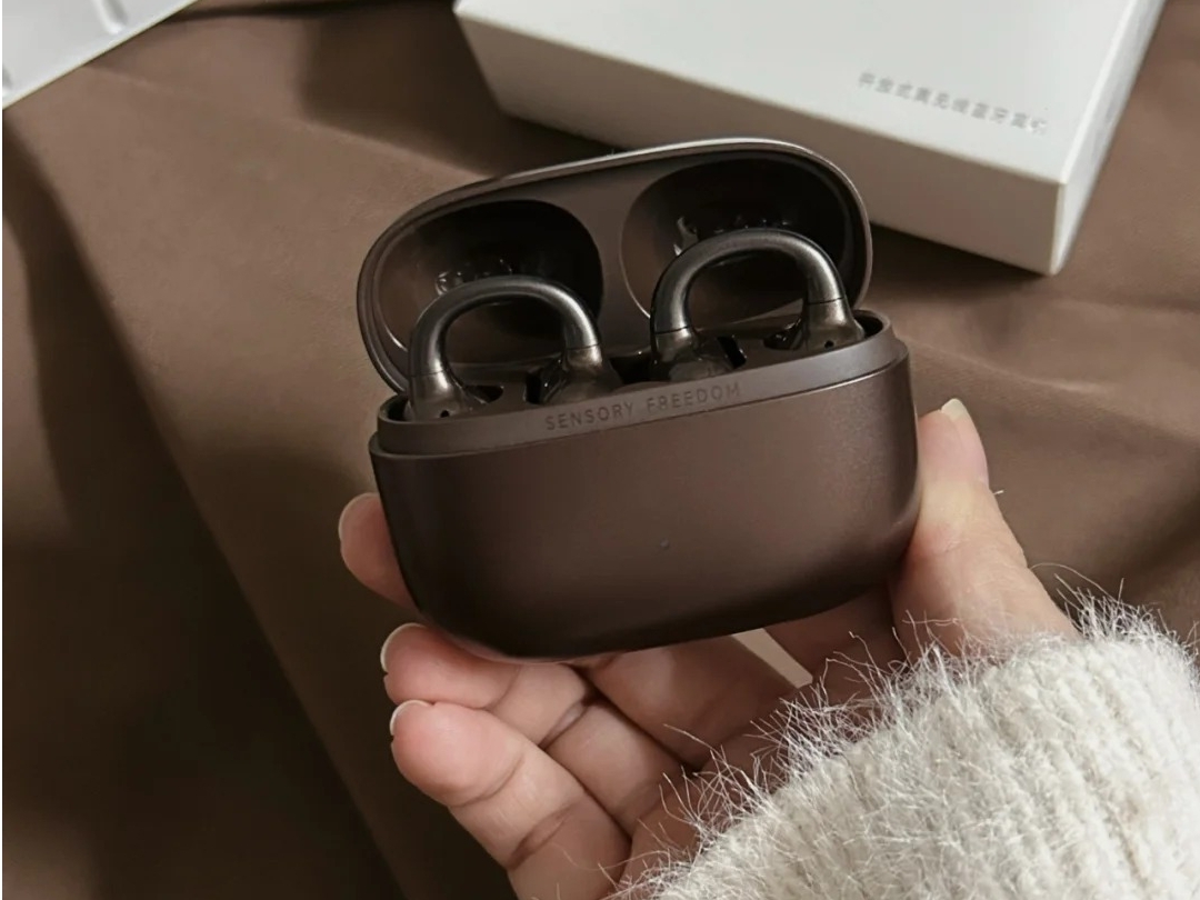 佩戴方面也花了心思的,耳机采用专利多曲率软梁设计,能很好地贴合耳廓。单耳仅重约 5.4 克,十分轻盈。搭配小圆头耳夹,长时间佩戴耳朵也不会有明显负担。加上亲肤液态硅胶,不仅触感舒适,而且能减少对耳朵的压迫。同时,它的三点稳固支撑结构设计,让耳机在运动时也能稳稳地固定在耳朵上,不易掉落。
