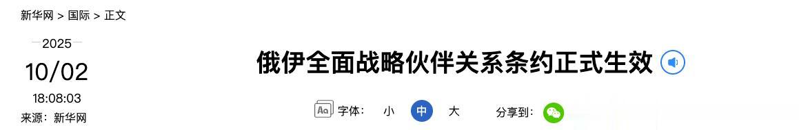 去年10月,伊朗和俄罗斯的全面战略伙伴关系条约生效了,俄罗斯现在开始践行。