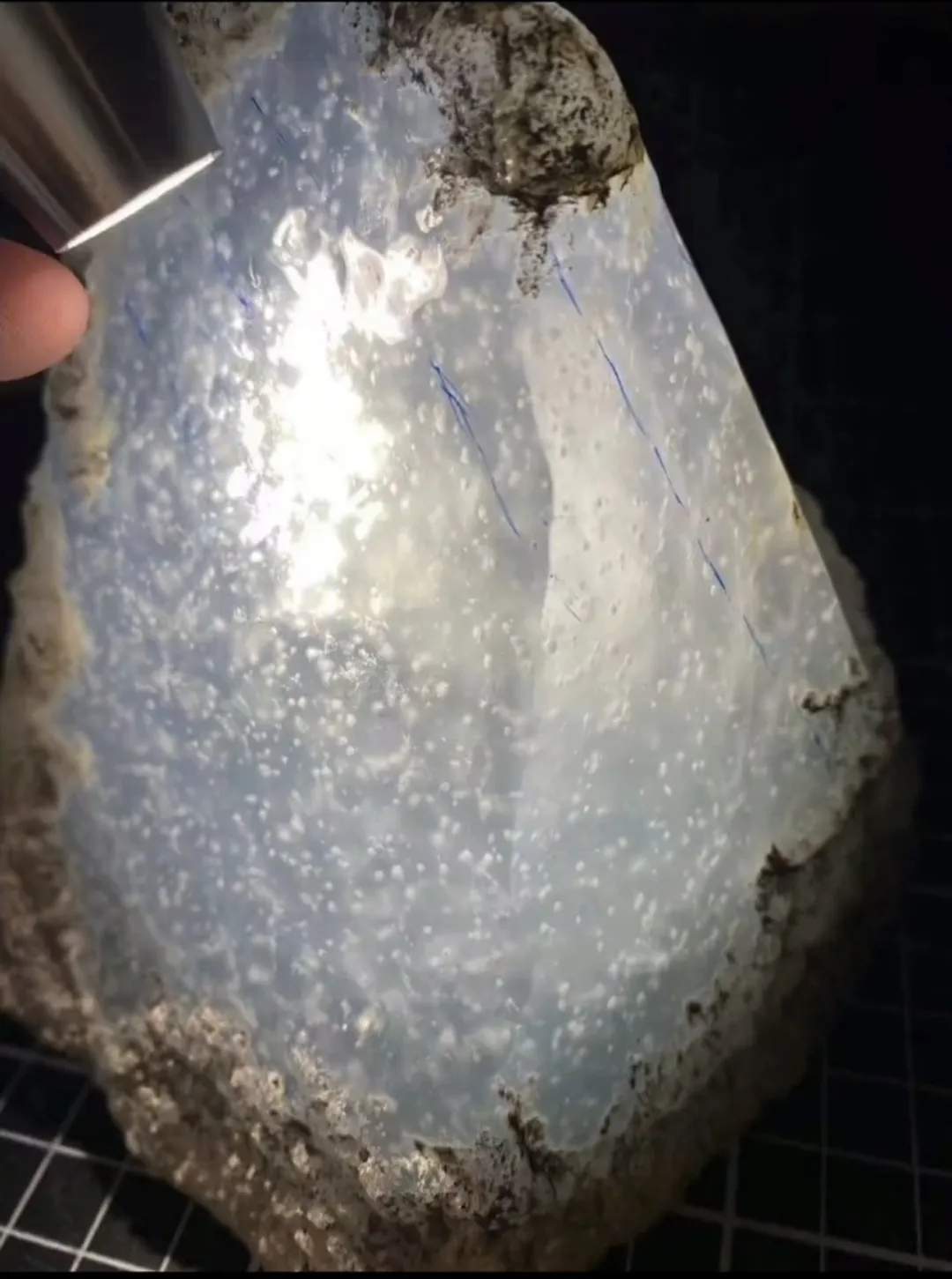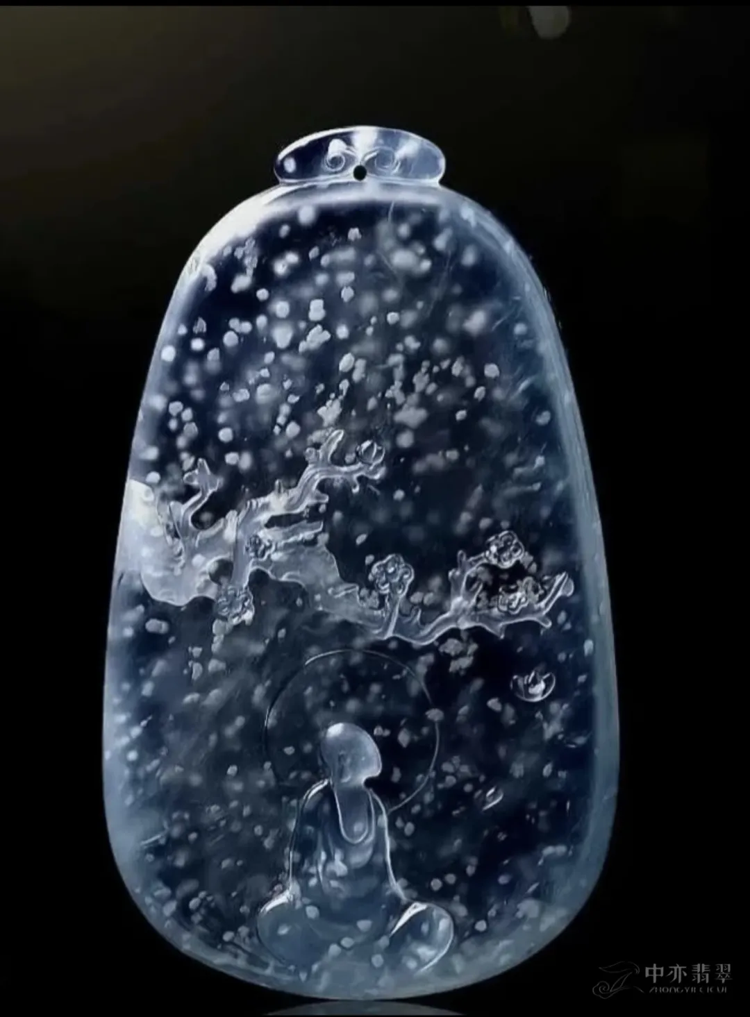 翡翠中的雪花棉,是冰肌藏雪韵的空灵,点点清莹如揉碎的星光,在通透底子中飘洒出诗意与浪漫。