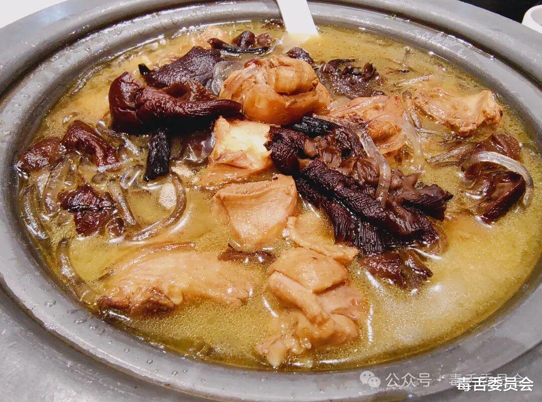 丈母娘小鸡炖蘑菇。还是那潦草的外观啊!但看这份量,也是管饱吧?这很东北。牙齿出动吧!夹起一块鸡送入口。牙齿切入,对抗力不足啊。其实早就预料到,东北人做得鸡就很难征服广东牙齿了。不过,这次的鸡,质感还算OK吧。至于入味,是足够深入的,但遗憾的是没有太精彩。隐隐约约,总是能尝到高汤的底蕴······?至于煲内的蘑菇给了我惊喜!那蘑菇一入口,便证明了自己野性难顺!绝非一般家常的菇类。野菇的香味是非比寻常的,牙齿每一次起落,挤出的是一股又一股山野气息······而那爽口却柔弱的质感,则在一定程度上弥补了那不太有趣的鸡肉质感留下的遗憾。这些野菇啊,绝对是这道菜的灵魂!我想,我会一直思念你们······至于那些薯粉嘛,一如既往的难缠而拖沓。客观地说,这道小鸡炖蘑菇味道是对的,跟多年前吃到的东北人是一个味。