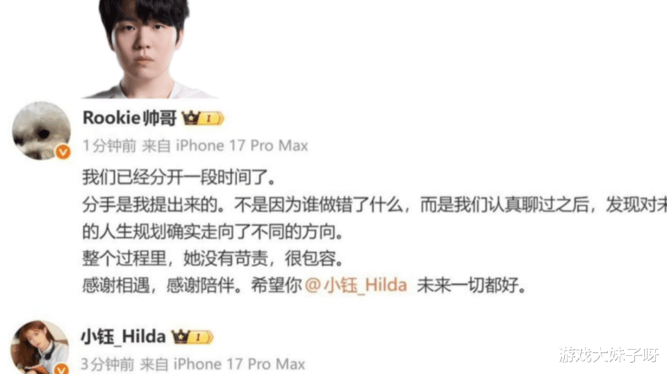 此前,Rookie与主持人小钰的分手消息在社交平台上持续发酵,不少网友围绕两人的感情问题展开讨论,一部分粉丝表达惋惜,也有人将矛头指向Rookie本人,导致相关话题在电竞圈传播速度极快,正是在这样的背景下,他宣布参与线下活动,自然让不少网友产生了各种猜测。