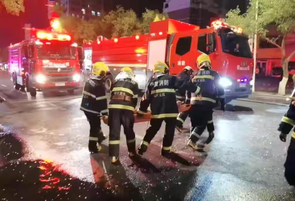 6月21日20时40分左右,宁夏回族自治区银川市兴庆区民族南街阜阳烧烤店发生气体爆炸事故。截至6月22日上午8点,事故造成31人死亡,7人受伤。在银川,消防救援人员在事故现场进行了救援。