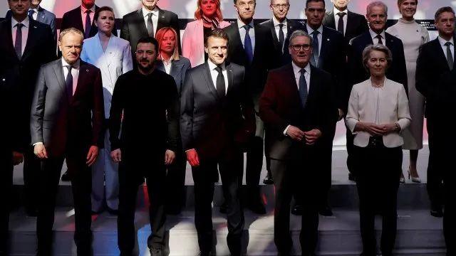 更耐人寻味的是,身高仅约1米6的梅洛尼在集体合影时"消失"在1米75的马克龙与1米7的泽连斯基身后,仅露出标志性金发。有参会者爆料,意大利代表团曾要求调整站位遭拒,最终梅洛尼以"缝隙求生"姿态完成拍摄,与身旁1米7的丹麦女首相形成最萌身高差,被网友戏称"欧洲权力游戏真人版"。