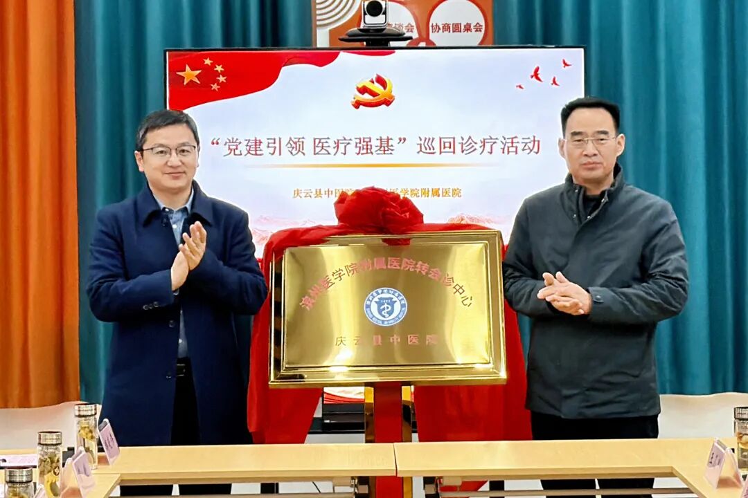 为深入贯彻分级诊疗政策,推动优质医疗资源精准下沉,切实提升县域医疗机构服务水平,1月23日,滨州医学院附属医院赴庆云县中医院,成功举办“党建引领 医疗强基”巡回医疗活动暨转会诊分中心揭牌仪式,标志着两院院际协作正式开启新篇章。