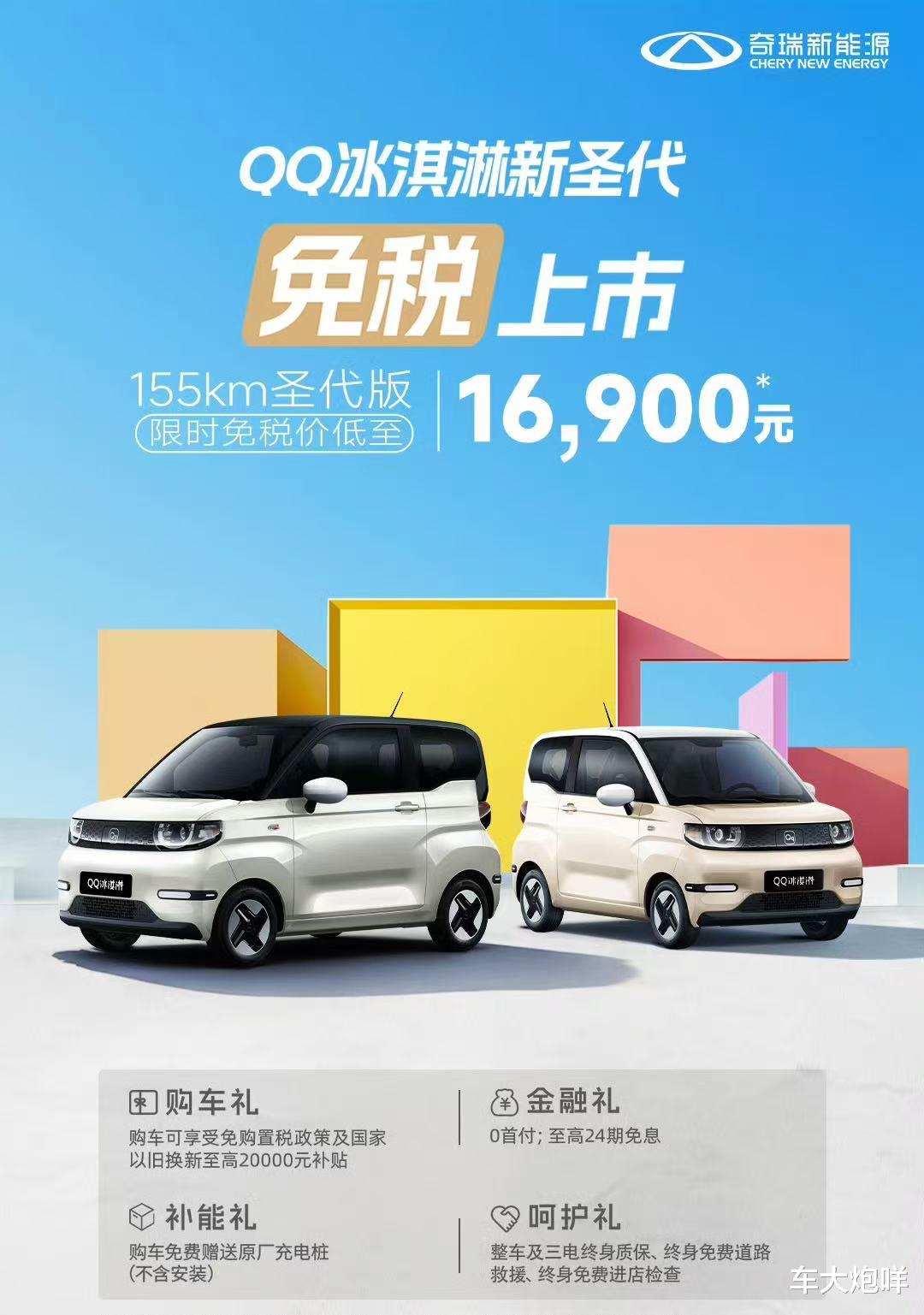 日前,笔者从奇瑞新能源官方获悉,奇瑞QQ冰淇淋新圣代现已正式上市,该车CLTC工况纯电续航155公里,官方指导价3.69万元,可享免购置税政策和国家以旧换新补贴至高2万元,满足条件下限时免税价为1.69万元。现阶段,在售奇瑞QQ冰淇淋整体指导价格区间为2.99万-5.69万元。